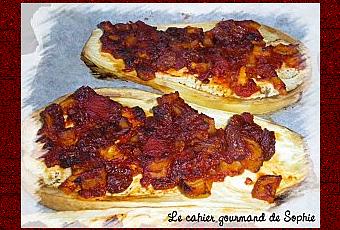En feuilletant mon livre Bien cuisiner léger, à la recherche d'un plat pour le soir, je suis tombée sur cette recette sucrée-salée qui m'a tout de suite plu !! Je l'ai adaptée un peu, mais la base reste la même : la longue cuisson permet au mélange de presque caraméliser, cela s'accorde parfaitement bien avec les aubergines ! La photo n'est pas flatteuse, mais je peux vous assurer que ce plat est très bon !