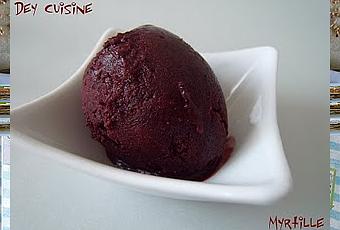- Mettre en sorbetière, dès que le mélange commence à prendre ajouter les myrtilles entières mises de côtés. Laisser environ 20 min puis verser le sorbet dans un récipient et mettre au congélateur au moins 2h. Sortir 15 min avant dégustation.
