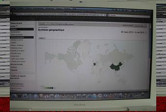 Pour mieux le retrouver au retour : déjà 6 semaines qu’on est ensemble ? Enfin, avec nos 600 visiteurs et nos 2200 visites, qui viennent surtout de France et de Chine, puis de tous les pays en vert sur la carte. Même qu’on vient de passer 25ième blog Chine sur le classement Wikio de mai, grâce à vous les ami(e)s ; alors merci pour vos visites, vos commentaires (il suffit de cliquer sur la bulle en haut à droite du billet et de laisser votre message), et les mails des timides qui n’osent pas s’exprimer sur le blog (osez les amies, osez !)