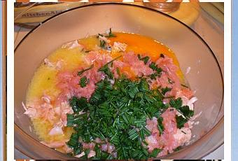 émiétter le saumon cuit, mélanger avec les autres ingrédients