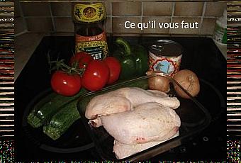 . Lorsque le poulet est bien doré, le retirer et mettre les oignons dans la sauteuse, les faire dorer, ajoutez alors les courgettes, bien les mélanger, puis le poivron et les tomates et du persil ciselé.
