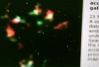 Mesurer la déviation de la lumière émise par les galaxies à diverses distances de nous revient à remonter dans le temps ; mesurer la déformation , individuellement faible mais statistiquement significative permet de reconstruire la distribution de matiére totale ( noire comprise) située sur la ligne de visée …Les astronomes ont examiné les 446000 galaxie du relevé COSMOS de HUBBLE et estimé par d autres méthodes les distances de 194000 d entre elles ….L ‘ étape suivante a consisté ensuite à affiner la quantification de l effet de lentille avec une précision accrue …Le résultat est net :la reconstruction en 3 D de ce qui s’est passé dans le champ d observation montre qu’avec le temps l’expansion s accélère (PHOTO QUI MONTRE QUE LES STRUCTURES EN BLANC BLEU ET VERT SONT PLUS PROCHES QUE CELLES EN ORANGE ET ROUGE)