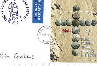 In memory of the victims of the Katyn massacre, the Polish Post has issued on April 7, 2010, a souvenir sheet to mark the 70th anniversary of this tragedy.