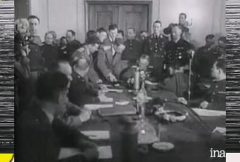 1 - signature de l'acte de capitulation du 8 mai 1945 (source INA)