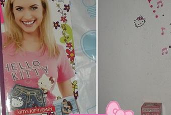 Habitant près de la frontière Allemande , chaque mois ou presque j'achète le magazine officiel Hello kitty.Et ce mois-ci le cadeau est particulièrement attrayant puisqu'il s'agit d'un sticker murale ! Il existe deux sortes une version 'music' (photos) et une autre avec des fleurs exotiques.J'ai faillit croire que je n'aurais jamais ce numéro de Juin,parce que je ne devais pas me rendre de l'autre coté de la frontière en ce mois de Mai mais que ne ferait-on pas pour Hello kitty ? ^^' Donc aujourd'hui j'ai résolu mon "problème" et aussitot rentrée j'ai mis en place mon préféré des deux : le thème music.Ca rend assez bien ! 3.20 € seulement (avec le magazine)