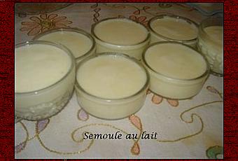 Faire bouillir le lait, ajouter le sucre, l'arome vanille et la semoule sans cesser de remuer pendant environ 3 min jusqu'à épaississement. Ensuite verser dans des ramequins et laisser refroidir.