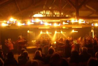 Cadre rustique, planchers sonores, charpentes authentiques et danses charpentées : ça piétine, ça tournoie et ça balance.Kan Ha Diskan breton, bourrées auvergnates, rondes du Quercy, polkas et mazurkas endiablées, musique traditionnelle cajun, tout y passe dans la joie et la bonne humeur.