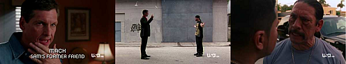 Cette saison, les « missions du jour » de Burn Notice n’ont jusqu’ici pas toujours été des plus inspirés et développés malgré leur efficacité qui le plus souvent réussit à occulter le problème de fond. Mais dans Friendly Fire, il semblerait que Burn Notice ait enfin réussi à signer une mission du jour aboutie et originale. Tout commence avec ce vieil ami de Sam venu lui demander de l’aide pour coincer une sorte de pédophile hispanique. Sam se montrera d’abord très énervé de revoir ce vieil ami avant de finalement accepter de l’aider avec le soutien de Mike et Fiona. Le fait est que le pédophile se terre dans un quartier aux mains d’un gang. La seule solution pour atteindre le malfrat est donc de passer par le gang… cela s’avère être une idée ingénieuse tant sur le papier qu’à l’écran. Mike en ténébreux bad guy qui deale avec le gang, ça offre pas mal de situations intéressantes. Par ailleurs, on est bien loin d’une histoire manichéenne de gentils vs méchants. Tout est question de pragmatisme et d’avantage. On nous montre que le gang n’a pas de bonnes ou mauvaises raisons pour agir comme il agit. Le quartier est livré à lui-même, ils tentent simplement de survivre, il faut donc qu’ils se sentent menacés par Michael. Finalement, Mike arrive à trouver un arrangement qui lui offrira le pédophile sur un plateau d’argent pendant que le quartier hispanique se débarrassera enfin d’un menaçant trafiquant. Sans surprise, le quota explosions est très bien respecté tout au long de cette histoire qui au final aura constitué une belle immersion dans les quartiers chauds de Miami. Rien que pour ça, Burn Notice a du mérite car rares sont les séries localisées à Miami qui exploitent cet aspect de la ville. Cette traque du pédophile par le vieux collègue de Sam est aussi l’occasion de voir ce dernier sous un autre angle. Il est rare que Sam perde son calme et sa légendaire cool-attitude, et cela a de quoi intriguer Maddie autant que le téléspectateur. Le fin mot de l’histoire, elle l’apprend de la bouche de l’ex-collègue : il a récupéré l’ex-femme de Sam. C’est un peu décevant en fait comme explication mais les préoccupations de Maddie au sujet de Sam auront été touchantes et auront mis en valeur la nouvelle relation assimilable à celle d’une mère et son fils, qui s’est établie entre eux cette saison. La relation Mike/Fi est aussi vite fait remis sur le tapis. Mike lui montre qu’il est aussi capable de penser à autre chose qu’au boulot et qu’il est disponible pour elle… s’est-il pas meugnon. Ce qui est bien, c’est qu’on ne s’éternise pas trop là-dessus pour ne pas tomber dans la niaiserie. Bon, sinon, j’ai toujours autant de mal avec le fil-rouge de cette seconde partie de saison. Gilroy j’ai l’impression que ce n’est qu’un Strickler/Carla bis. Donc revoilà Mike qui essaye d’en savoir plus sur sa burn notice en étant à la solde d’un nouveau freelance des renseignements. Déjà vu !!! Ce qui aurait pu m’aider à faire passer la pillule c’est si le personnage de Gilroy s’était montré un peu plus atypique et surprenant… mais jusque-là, c’est tout le contraire. Mais il reste encore 5 épisodes cette saison, c’est largement pour que les choses s’améliorent.