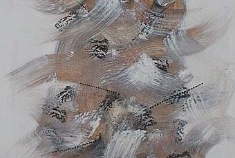 Toile sur fond blanc avec couleurs acryliques taupe bronze et étain