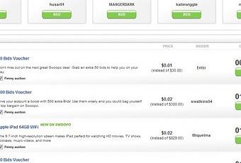 Swoopo s’est specialisé dans l’électronique pour le plus grand plaisir des intéressés. On peut y avoir des iPad pour $20, quand on voit ça, on peut dire que c’est un bon deal. Il vous coûtera $0.60 pour placer votre enchère.