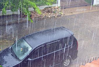 -16h10 : Je me rends en voiture à l’école pour récupérer les enfants. Il ne pleut pas. A mi-parcours, je vois au loin arriver la pluie. En quelques secondes elle est sur moi. En plus de la pluie c’est un déluge de grêlons qui l’accompagne. On n’y voit plus rien. Tous les automobilistes s’arrêtent sur le bas coté de la route. Je mets les warning et j’en fais de même, je ne peux pas faire autrement. Je crains pour la voiture à cause des grêlons. Avec mes compagnons d’infortunes nous attendons que cela passe. Comme souvent en Thaïlande, les orages ne durent pas longtemps. Quinze minutes après les grêlons cessent de tomber. La pluie continue de tomber drue. Je reprends la route, roule doucement et récupère les enfants tout contents d’avoir vu de la glace tomber du ciel.