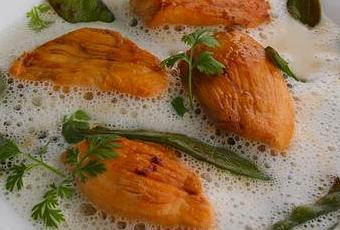 Tout simplement du filet de poulet découpé en morceaux, mariné dans un peu de sauce soja et de sirop d'agave, plus un peu de gingembre rapé. Le tout est cuit ensuite à la poêle.