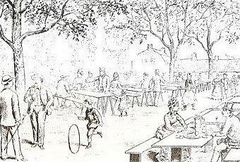 La "funquée" suivait les fêtes populaires.Lithographie de Boldoduc