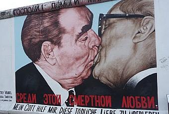 La porte de Brandebourg aujourd'hui et une œuvre d'artiste peinte sur le mur de la honte. (photos JCH)« En Allemagne j'ai aussi obtenu un extrait de naissance trilingue à la mairie de ma commune de naissance, ce qui serait impossible en France. On y pense plus "Europe" qu'en France apparemment. »