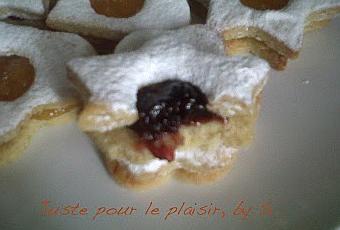Ma recette:- 250g de farine- 1 oeuf- 70g de sucre + 1 sachet de sucre vanillé- 1 cac de levure chimique- 1 zeste de citron- 120g de beurre (ou margarine)- confiture au goût- sucre glace pour la déco