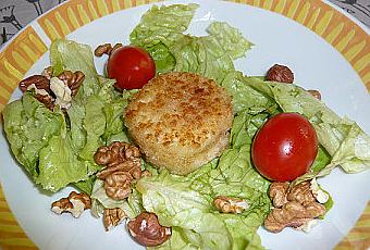 creuse la salade, les noix et noisettes et 2 tomates cerise.