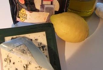 Les ingrédients : noix de St Jacques avec corail, un citron bio, du lait, de l'huile d'olive, du roquefort et du parmesan.