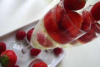 Ahhhhhhhhhhh, le blog de Pierre Cuisine ....est pour moi une vraie source d'inspiration, tant ses recettes sont très bien réalisées!!Les fraises montrent le bout de leur nez sur les étals....quoique encore très onéreuses et les framboises font leur timide apparition..........de quoi réaliser ce sublime dessert!!!!Alors, là.....n'hésitez pas à le faire.....le déguster....vous serez conquis!!!Pour 6 personnes ( j'ai divisé par deux et j'ai eu pour 4 verres à champagne)-1/2 litre de Schweppes nature-1 citron vert-5 feuilles de gélatine-6 framboises-1 barquette de fraises-sucreTuile aux fraises séchées (qui n'a pas été réalisée)-du glucose-des fraises séchéesPréparation:LA GELEE DE SCHWEPPES*Faire fondre la gélatine dans de l'eau froide*Prélever le zeste du citron vert*Prélever le jus du citron , et le chauffer.*Ajouter la gélatine bien essorée.*Verser dans un saladier le liquide encore chaud , puis ajouter le zeste , le Scheppes.*Ca mousse, mais ça ne dure pas.*Bien remuer , passer au chinois et réserver (j'ai gardé quelques zestes de citron)*Verser après refroidissement le liquide dans des verres à champagne (pour avoir plus de transparence)*Mettre au réfrigérateur.*Au bout de 2 heures, la gelée est tremblotante....y insérer une framboise jusqu'à ce qu'elle soit bien au centre de la masse.*Remettre au frais.SALADE DE FRAISES*Laver les fraises et les équeuter , les couper en morceaux , ajouter un peu de sucre et remettre au frais.TUILES AUX FRAISES SECHEES*Etaler du glucose sur un Silpat ou une feuille de papier cuisson.*Couper deux fraises séchées en petits dés et disposer sur le glucose.*Enfourner à four très chaud, le liquide bout dans le four pendant 5 minutes.*Surveiller la cuisson, les tuiles doivent rester "blanches".*Après refroidissement, casser les morceaux pour avoir des minis- tuiles.MONTAGE*Au moment du service, dresser la salade de fraises sur la gelée de Schweppes.*Décorer avec la tuile de fraises séchées.*Lors de la dégustation, bien prendre la gelée en même temps que les fraises.Amertume et douceur vous raviront le palais!!! Préparer ce dessert la matin pour le soir ou la veille pour le lendemain!!!Du pur bonheur................merci Pierre!!!
