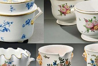 dans de plus petits pour une ou une demie bouteille. De même pour les verres. La maison Aguttes présente plusieurs de ces objets en céramique du XVIIIe siècle lors de sa vente du 26 mai 2010 à Drouot