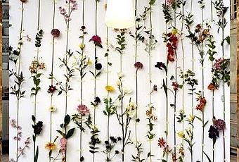 Chez Design Front,ils ont trouvé un truc:suspendre des fleurs artificielles de façon "graphique".