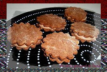 Au départ, je voulais faire les biscuits cappuccino fourrés au chocolat de Martha Stewart, en me disant que pour une fois j'allais respecter la recette... Et puis non, ils se sont finalement transformés en biscuits tout chocolat, avec un délicieux fourrage chocolat au lait-abricot !! Un régal !!Je n'ai par contre pas pris le temps de les décorer.