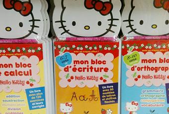 Hello Kitty effaçable j’écris les lettres majuscules cursives dès 5 ans => Un livre effaçable pour s’entraîner à écrire toutes les lettres de l’aphabet en majuscules cursives. – Des modèles de lettres fléchées pour en mémoriser le tracé – Des réglures de taille différente pour s’exercer de manière progressive – Un support effaçable pour recommencer autant de fois que l’on veut, avec en cadeau le feutre Hello Kitty, 6,95€.