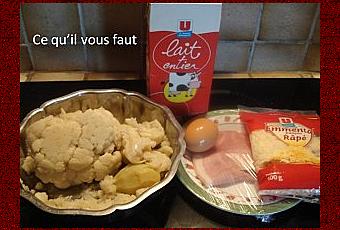 . Faire une béchamel (beurre, farine, eau de cuisson du chou fleur et lait)