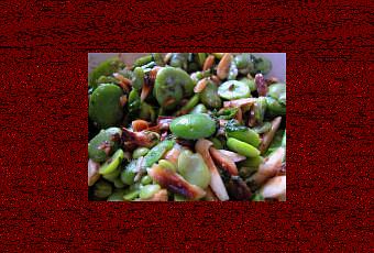 - En entrée, une salade de fèves fraîches aux amandes grillées à servir accompagnée de fromage frais de brebis et de quelques charcuteries italiennes