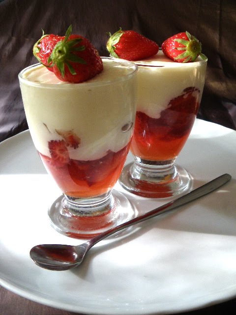 Et tous les ans c'est la même chose , j'attends avec impatience les premières fraises qui ont du goût, les Gariguettes et nous y voilà , la première recette faite et les premières bouchées dégustées et me voilà aux anges...elles sont bonnes , manquent encore un peu de sucre....1] Préparer votre sirop au Cointreau: (150g d'eau, 200g de sucre, 40g de cointreau) mélanger et chauffer l'eau et le sucre jusqu'à ce que le sucre fonde. Ajouter le Cointreau après refroidissement. Laver, équeuter et couper les fraises et faire tremper dans le sirop(au frais) pendant la préparation de la crème.