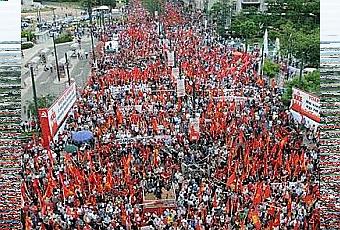 Le rassemblement du KKE qui se tenait le samedi 15 Mai sur la Place Pedion Areos était un vibrant flot rouge de manifestants. Les slogans et l'atmosphère du rassemblement ont reflété la détermination de l'ensemble de la population à résister, à lutter, à défendre leurs droits et à ouvrir la voie à un nouveau cap par leurs luttes de classe. Dès les tout premiers moments, le rassemblement national du parti s'est imposé comme une des manifestations les plus massives qui se sont déroulées à Athènes ces dernières années.