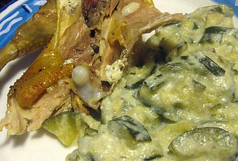 J'ai utilisé la moitié du pot environ et gardé le reste pour les courgettes.