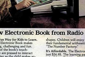 En 1986, un livre interactif se composait d’un livre papier truffé des composants électroniques sur lequel le jeune lecteur pouvait cliquer pour déclencher des sons. Branché sur un ordinateur dans lequel devait être inséré la disquette adéquate, il ne fallait pas s’imaginer lire ailleurs que chez soi : La génèse du livre électronique pour enfant avait des inconvénients.