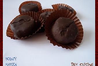Pour une 12aine de minis bounty : 50 g de noix de coco râpée, 60 g de lait concentré sucré, 100 à 150g de chocolat noir (ou au lait)