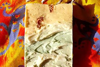 Pour l'occasion, voici la recette du savon que j'ai fait en pensant à ces îles, et que j'avais envoyé à Olivier. Un savon au monoï, bien sûr ! Je voulais voir s'il était possible en savonnerie à la soude d'obtenir un look proche de celui que j'avais fait en melt and pour ici...