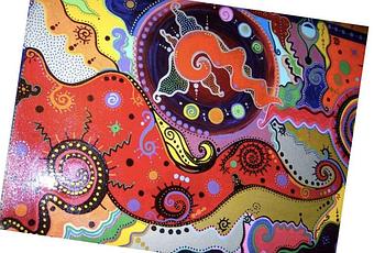 J’utilise de la peinture acrylique. Je peins au pinceau, à la main, mais aussi avec tout ce que je trouve. Pour réaliser des effets de matière, des reliefs ou bien des formes arrondies , j’utilise encore une fois tout ce qui me passent sous la main. Je n’ai pas de technique particulière , lorsque je commence une toile je ne sais jamais avec quoi elle sera faite ni ce qu’il va en ressortir au final. C’est toujours pou moi un grand effet de surprise. Il m’arrive parfois de peindre un tableau à l’horizontal et puis en le retournant de m’apercevoir qu’un dessin était apparu. L’exemple le plus flagrant est l’une de mes toiles que j’ai appelé « SpAcE-bOnhOm » , Si vous y jettez un coup d’œil, vous comprendrez pourquoi !