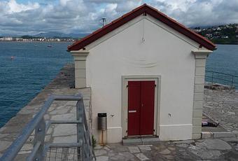 Restons à Socoa, sur une jetée à deux pas du fort. La machine à mesurer la mer n’est pas dans la petite maison visible sur la photo, ou du moins n’est plus, mais juste derrière, planquée, là où des mâles soulagent des besoins physiologiques urgents ; en clair, l’abri qui abrite la machine sent le pipi, donc pas de photo.