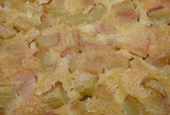 Égoutter la rhubarbe et la verser sur le caramel.