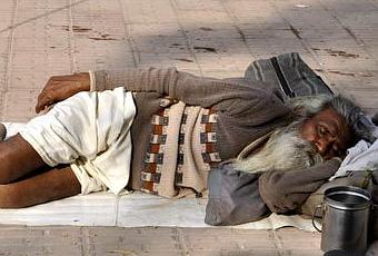 On the ground, peaceful, he was sleeping. Haridvar mars 2010