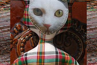 Cette petite minette est habillée de soie naturelle cambodgienne à motif écossais. Ce tissu précieux a été récupéré sur un kimono traditionnel.