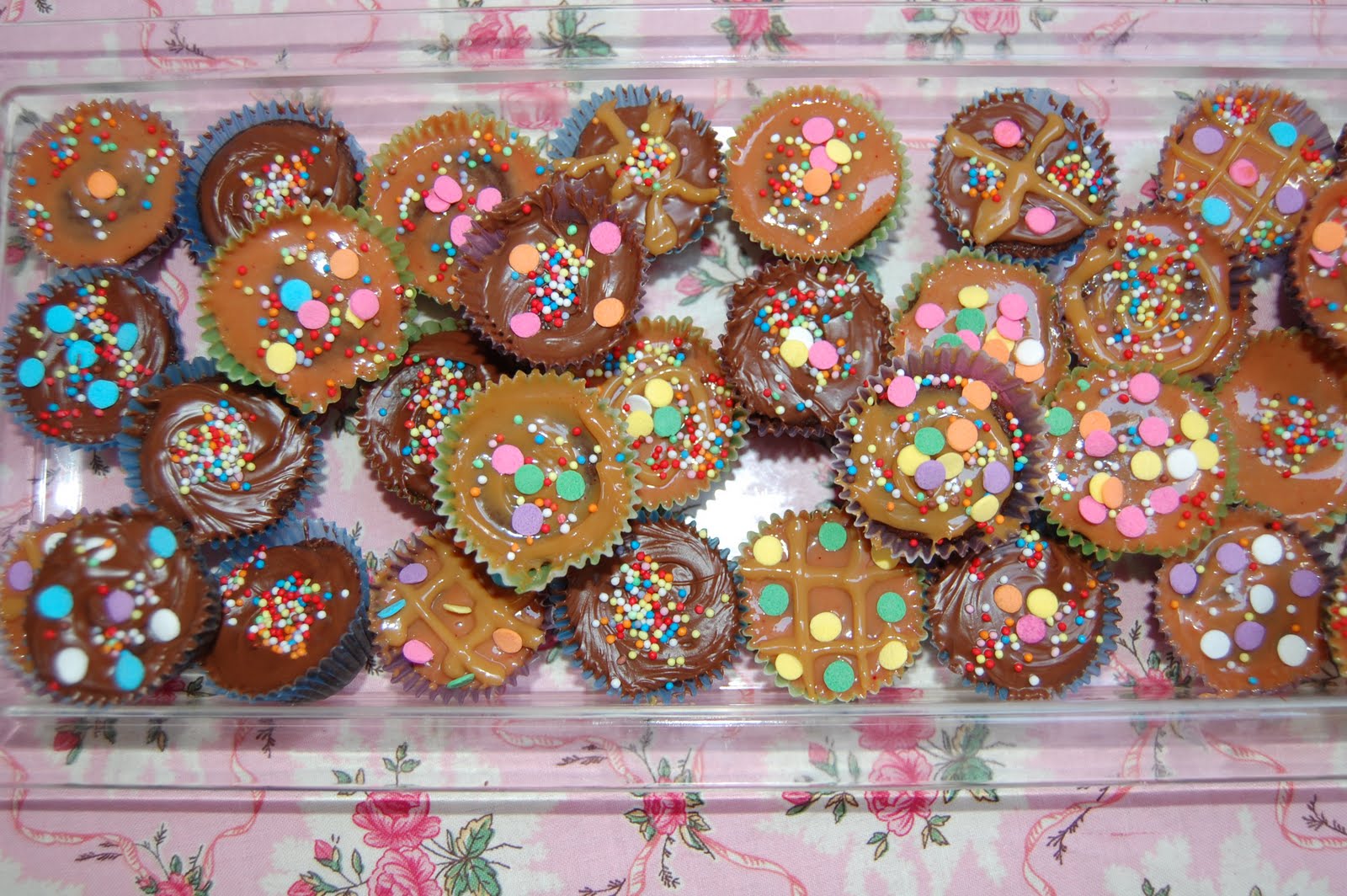 La recette du gâteau est celle des "CupCakes choco-amande" ou "tout chocolat" (pour l'instant, c'est la plus goûteuse dans les cupcakes chocolat)Topping Confiture de lait:- 1 vache-qui-rit,- 3 cuillères à soupe de confiture de lait (voire recette dans "astuce",- 1 cuillère à soupe de petit suisse nature (fromage blanc),- quelques grains de colorant alimentaire (ici rose),des petits sucres coloré,- de la confiture de lait pure.