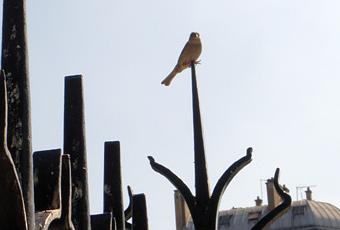 Les oiseaux familiers, la vieille qui les nourrit, le merle qui se baigne avec ses copains les moineaux dans une flaque à vos pieds.