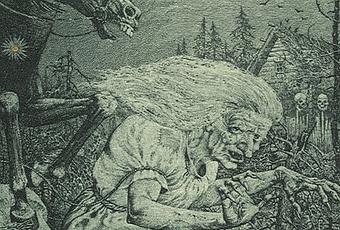 Voici la version de Babayaga après Bilibine ou Rébecca Dautremer, ici nommée Baba Jaga, par Konstantin Kalynovych.