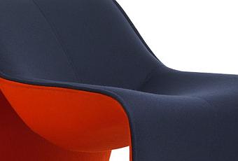Un structure plastique renforcée de verre constitue la colonne vertébrale de l’ensemble qui est recouvert de tissu en 2 tons ou monoton, zippé sur le côté et renforcé de polyuréthane pour le confort d’assise. La ligne est d’une simplicité exemplaire, un seul ensemble qui constitue l’assise et le piétement dans la continuité. Nous sommes ici dans le confort enveloppant absolu, on a bien envie de s’y laisser aller avec un livre (ou un Ipad), l’ensemble est très accueillant, on ne doute pas de son confort et c’est également un superbe objet au delà de sa seule fonction.