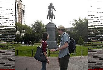 Dans le parc Boston Common; ils ne discutent pas du tout du monument à George Washington, mais plutôt d'un petit teckel que l'on vient de croiser!