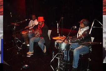 Youss encadré par Fortuné et SoliacAprès le spectacle, que les niçois ont raté (public pas nombreux, faute de médiatisation ?), nous nous sommes en effet retrouvés "en famille" chez Lina Badila, notre hôtesse, autour d'un bon bouillon de poisson salé aux crevettes séchées, accompagné de semoule s'il vous plaît, à défaut de manioc (le congolais et le manioc, une longue histoire!). Longue causerie, jusqu'au petit matin, vers 5 heures du matin. Je ne peux pas ne pas dire un mot sur Youss Banda, chanteur qui a beaucoup voyagé (comme ses compagnons d'ailleurs). C'est un homme direct, qui parle de tout avec la même aisance, la même franchise, la même légèreté, depuis la crainte, non pas de mourir (on n'y peut rien, elle nous prendra tous, lui surtout se sent quelque peu menacé à cause de sa dénonciation du pouvoir dans ses chansons) mais de mourir à l'étranger (lourde charge pour les siens au pays) ; depuis des sujets graves donc comme la mort ou la solitude qui se cache parfois derrière les apparences d'artiste connu, jusqu'à des sujets plutôt légers, voire coquins, comme les gémissements de plaisir que les femmes de chez nous devraient exprimer en langue de chez nous pour flatter l'oreille de l'amant... La conversation de Youss Banda est à elle seule un spectacle : langage fleuri ; beaucoup d'humour, de bonhomie ; de l'ironie parfois. Très taquin, très lucide.
