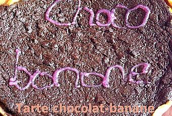 ♦ Lorsque le fond de tarte est cuit à blanc, le sortir du four. Le laisser légèrement tiédir. Ajouter les bananes écrasées les étaler sur toute la surface. Ajouter la ganache et remettre la tarte au four. Faire cuire 10 min.