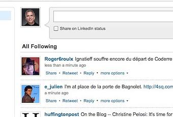 Plus d’un million de membres de Linkedin ont adhéré au service de synchronisation de statuts. Forts de ce succès, les dirigeants de Linkedin ont poussé plus loin cette intégration en proposant un client Twitter complet.