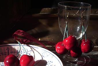 Celles -ci sont doubles, mais vous trouverez les boucles d'oreilles à une cerise comme celle-ci (clic!) à Paris, à Rouen et à Nantes.