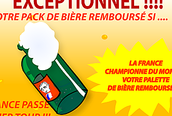 Après les sponsors de l'équipe de France et leur publicité de remboursement selon les performances des bleus, la bière et le football faisant souvent bon ménage la prochaine offre publicitaire liée à la coupe du monde pourrait bien être :