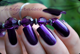 Un vernis vraiment magnifique, un beau violet profond au micro paillettes fushia, j'adhère totalement ! Il ressemble beaucoup au Color Club - electronica (comparaison ici) Le pinceau et la texture sont parfaits, je n'ai même pas eu besoin de nettoyer l'arrondi aux cuticules ! La couleur la plus ressemblante est la 1ere photo. 2 couches